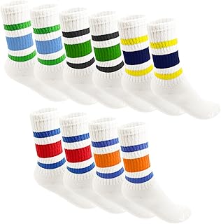 FUIPVGI 5 Pairs Crew Sport Socks, Retro Striped Soft Athletic Socks, Cute Casual..
